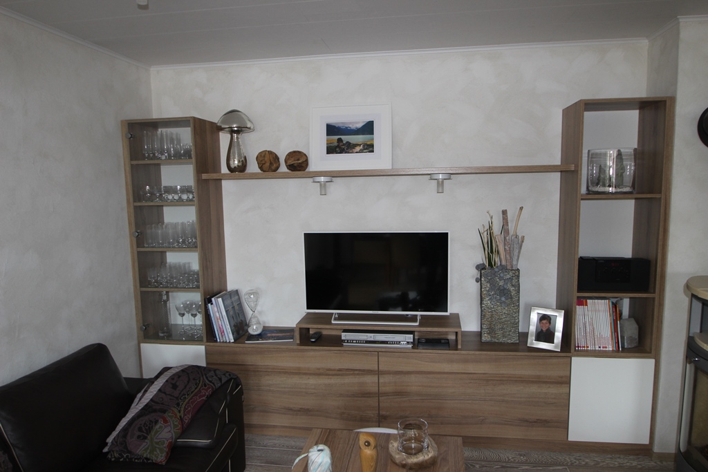 Fernsehschrank in Eiche mit weißen Akzenten,