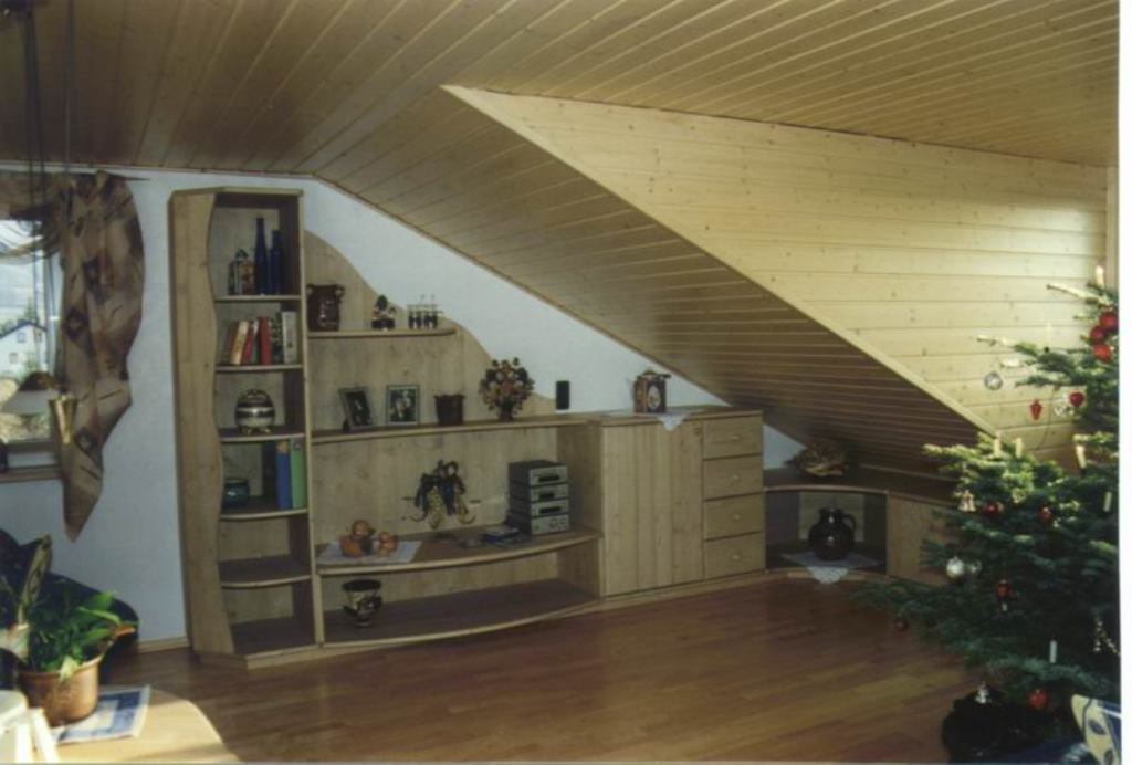 Regalwand über Eck in Fichte massiv,